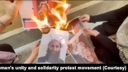 د اتحاد او پیوستون په نوم د افغان میرمنو د یو اعتراضي خوځښت غړو په کابل کې په یوه غونډه کې په سمبولیکه بڼه د طالبانو د چارواکو او د هغوی د ملاتړو په تصویرونو باندې خط کش کړی او ورته یې اور اچولی دی.