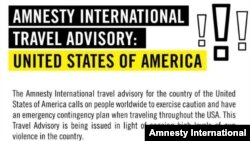 له ډېرو کلونو راپدې خوا امریکا، هغو هېوادونو ته د سفر په اړه خلکو ته خبرداری او مشورې ورکوي چې ترهګرۍ ځپلي یا جګړه پکې روانه ده خو اوس د بښنې نړېوال سازمان او یو شمېر هېوادونو د وسله وال تشدد له امله امریکا ته د سفر په اړه مسافرینو ته خبرداری ورکړی دی.