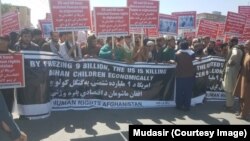 د کابل ښار یو شمېر اوسېدونکو د یو لاریون په ترڅ کې یو ځل له متحده ایالاتو څخه د افغانستان د کنګل شویو شتمنیو د خلاصولو غوښتنه وکړه.