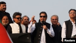 خان، چې تیر کال د یو لاریون په ترڅ کې په ډزو ولګید او ژوبل شو، هڅه یې کړې چې په پارلمان کې د عدم اعتماد د رای وروسته ددې هیواد سیاست ګډوډ کړي.