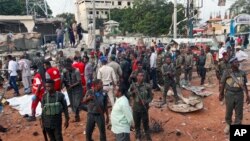 د سومالیا د پایتخت موگدیشو ښار یو هوټل ته نژدې د جمعې په ورځ بمي چاودنې وشوې چې ددې هیواد د مقاماتو په وینا ددغه برید د وژل شویو کسانو شمیر اوس ٥٢ ته رسیدلی دی.