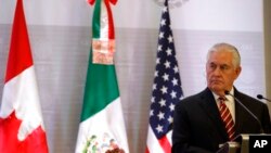 ښاغلی ټېلرس د مکسیکو له ولسمشر انیریک پینیه نیټو سره هم د بندو دروازو ترشا خبرې کړي دي. دا لیدنه په داسې یو وخت کې وشوه چې امریکا خبرداری ورکړی چې د کاناډا، مکسیکو او امریکا ترمنځ له تجارتي قرارداد څخه چې "نفټا" یې بولي، وځي.