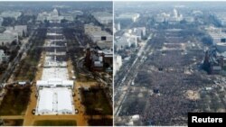 د هوا د لاري اخیستل شویو عکسونه دا ښکاره کوي چې ټرمپ د لوړي په مراسمو کي د خلکو ګډون د ٢٠٠٩ کال په پرتله ډېر کم و.
